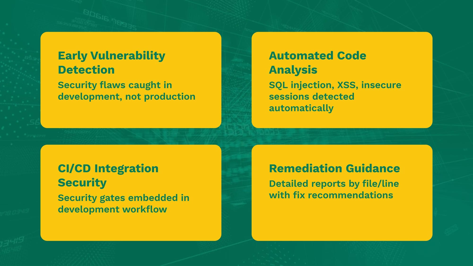 - No automated code security analysis in development